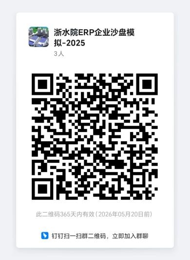 参赛报名同学请加入“浙水院erp企业沙盘模拟-2025”钉钉群中发布(钉钉群:134080001140),校赛安排等相关事项后期会在群内发布。