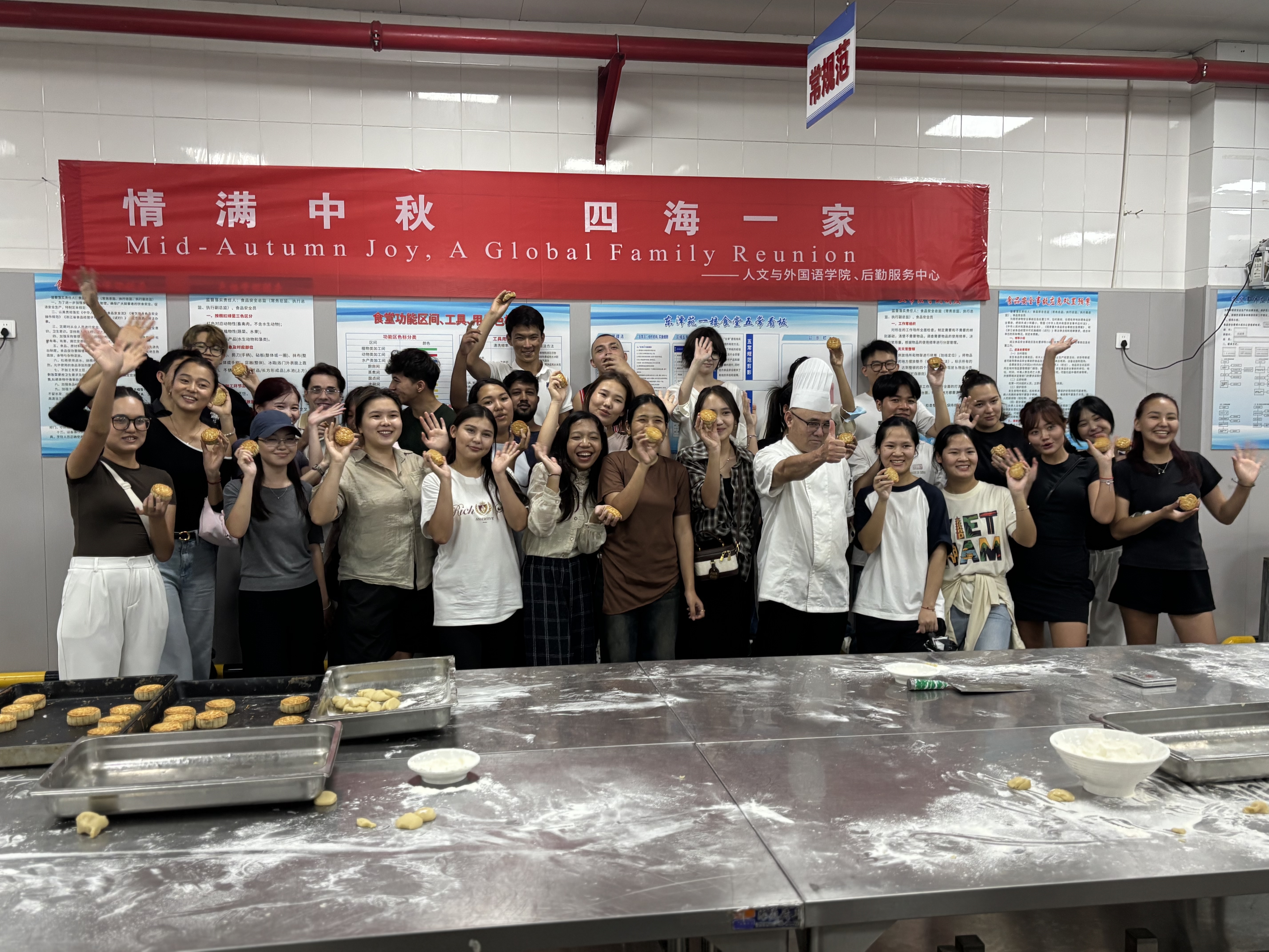9月29日下午,我校举办情满中秋,四海一家文化体验活动,30余名来自不同国家的留学生在食堂面点师傅指导下,亲手制作月饼,沉浸式体验中秋传统习俗。