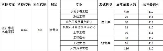浙江水利水电学院2025年函授专升本招生人数和最低分数